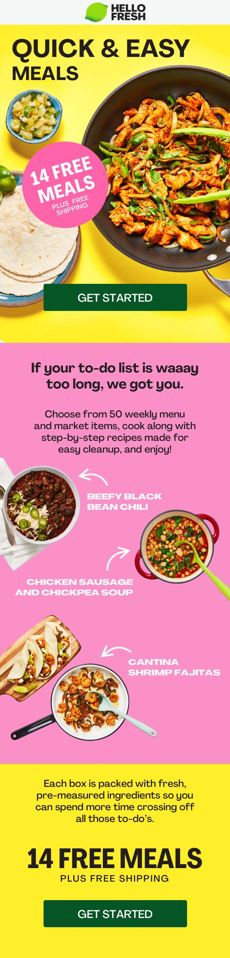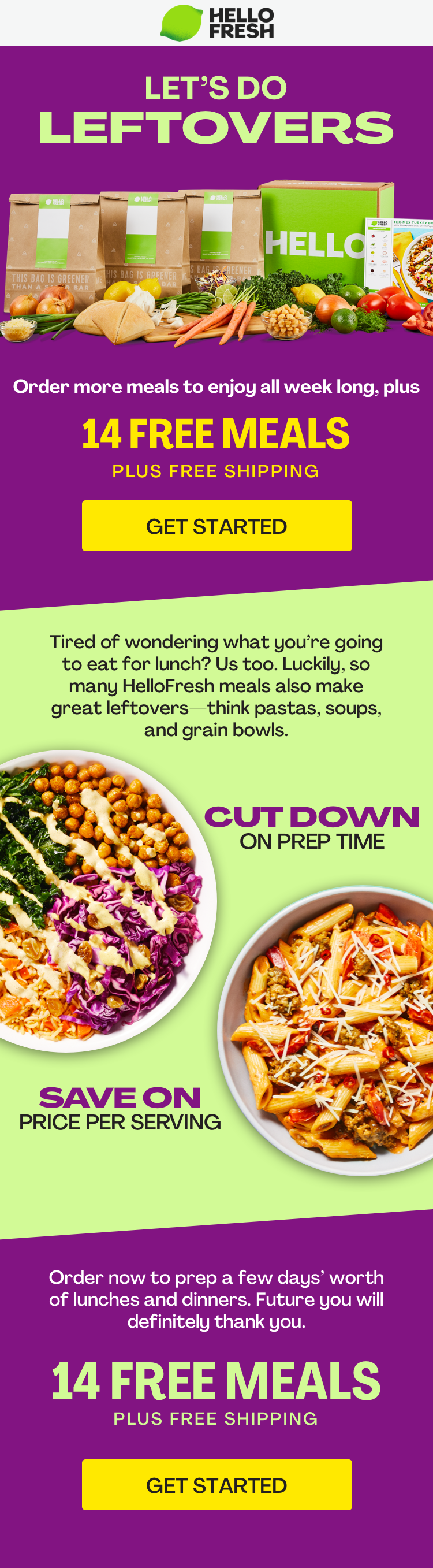 As America’s #1 Meal Kit, HelloFresh sets out to inspire home cooks with simple, delicious, and wholesome meals. I brought this mission to life across multiple consumer touchpoints including email, print, social, and display, serving up no shortage of food puns and quippy copy. I also wrote for its sister brands EveryPlate and Factor.